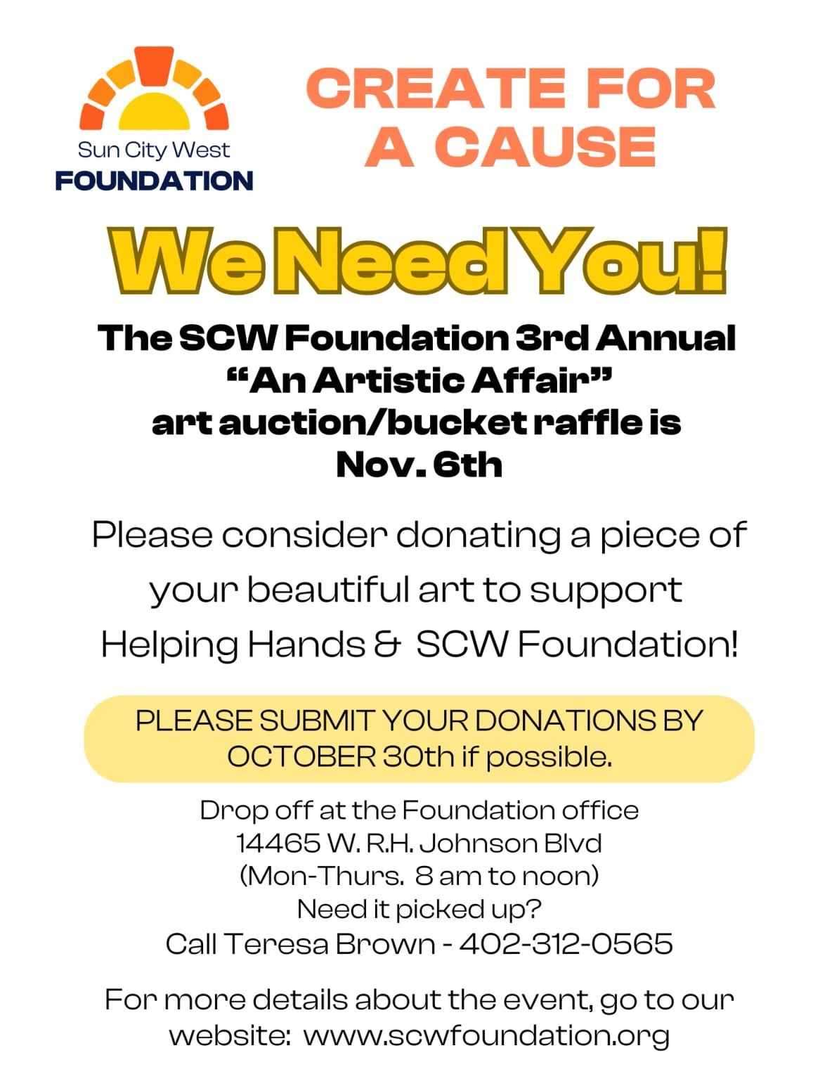 Have questions or want to arrange a drop-off? Call Teresa Brown at 402-312-0565 for more details.
