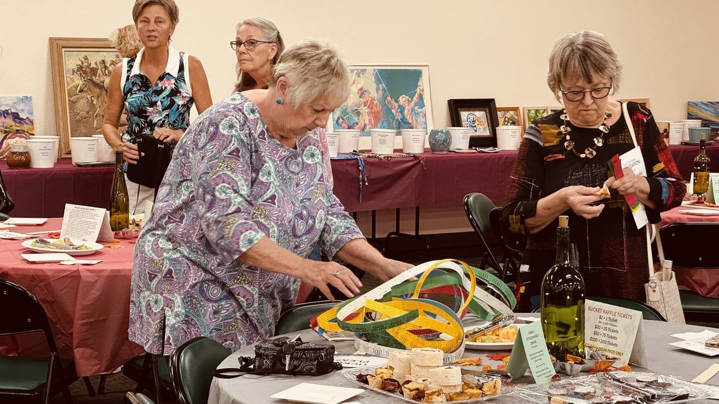 We’re also still accepting donations from artists and local businesses! We especially welcome jewelry, woodworking, metal, cards, paper crafts, weaving, quilting, stitchery, pottery, glass, and all types of paintings. Items can be dropped off at the SCW Foundation office (14465 W. R.H. Johnson Blvd., near the Posse and Resale Shop) Monday through Thursday, 8 AM–12 PM. Every artist who donates receives a Free Bucket Raffle Ticket Bundle as a thank-you for contributing.